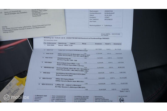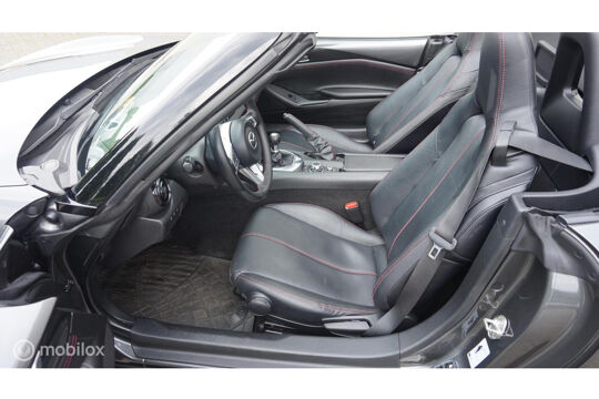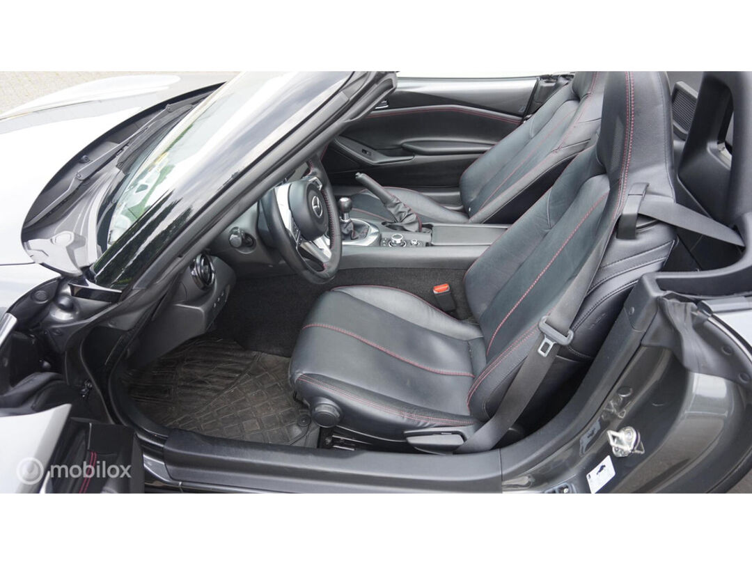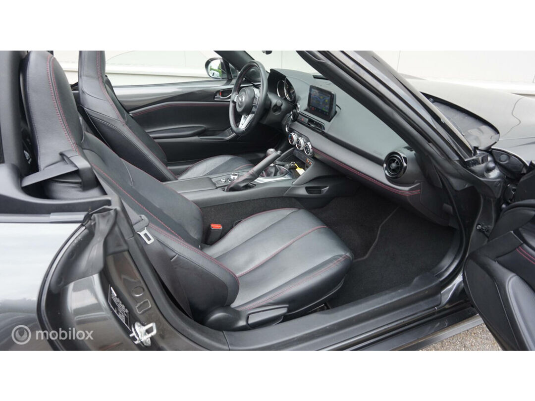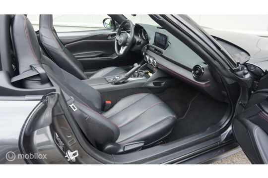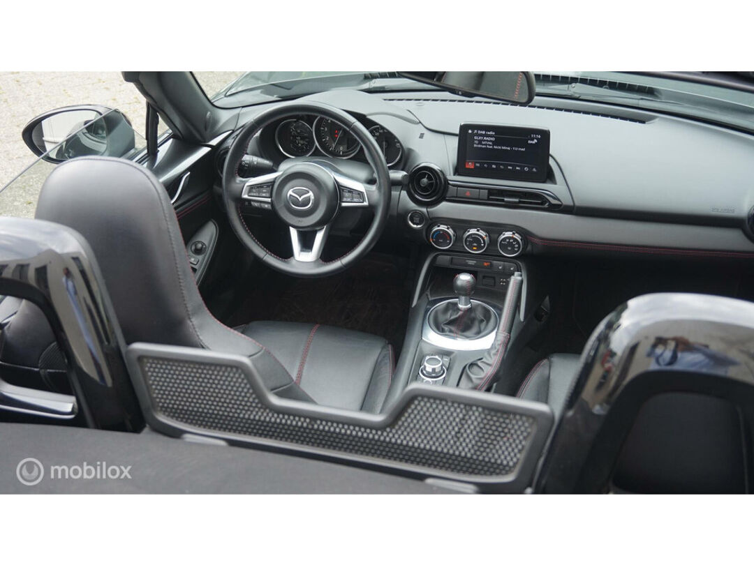 De Mazda MX-5 is gebouwd met hoogwaardige techniek en maakt het rijden van lange ritten, maar ook korte stukjes, tot een feestje. De aandrijving van deze Mazda wordt verzorgd door een viercilinder benzinemotor en een handgeschakelde versnellingsbak. De auto is voorzien van leren bekleding - een fraaie en sfeerverhogende extra. Deze Mazda MX-5 heeft verwarmbare voorstoelen, voor zowel bestuurder als bijrijder. Tot de voorzieningen van deze auto behoren 16 inch lichtmetalen velgen en LED koplampen.